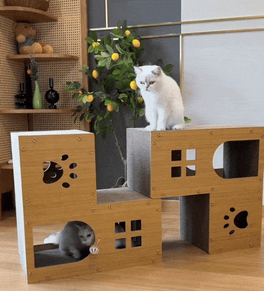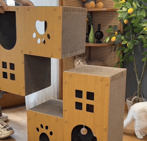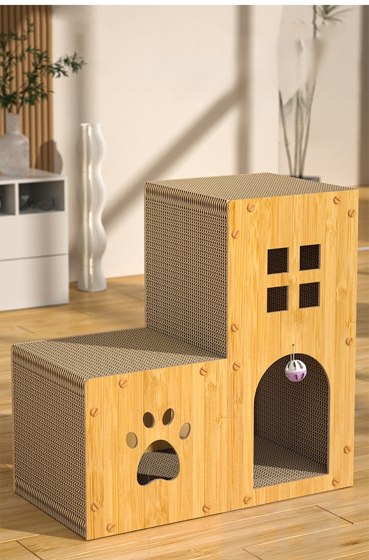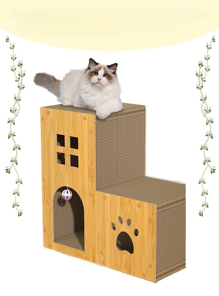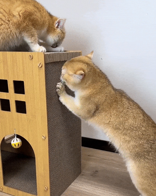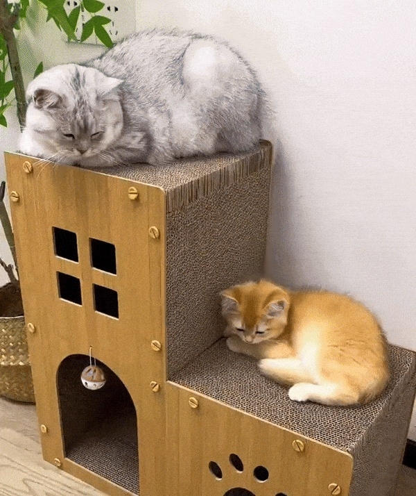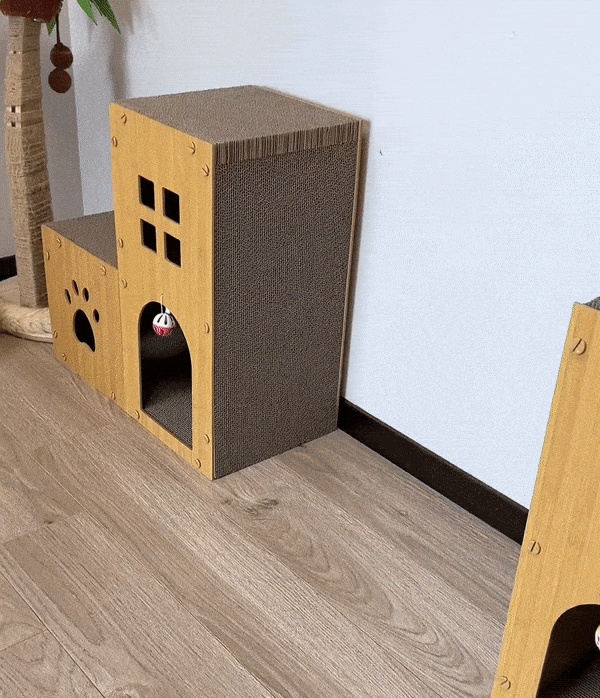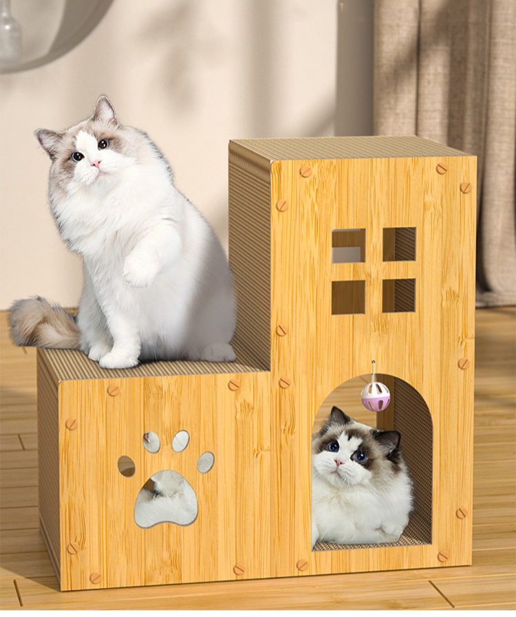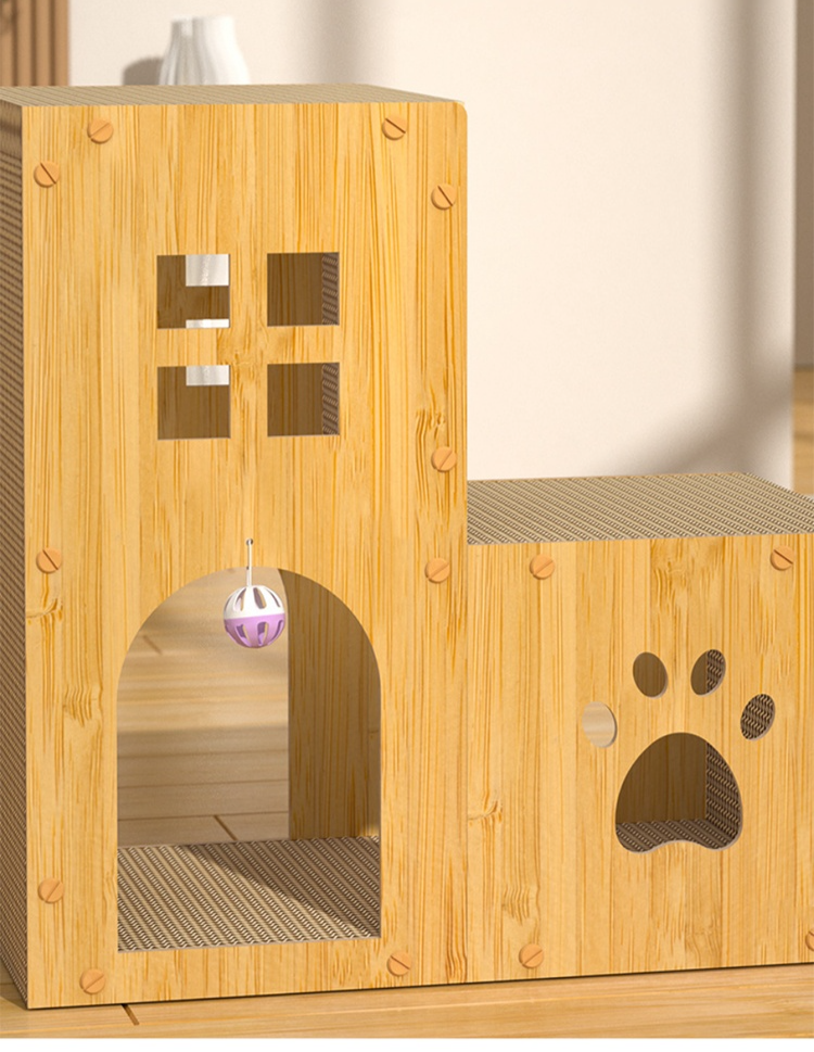 Katzenvilla aus Wellpappe mit Kratzbrett